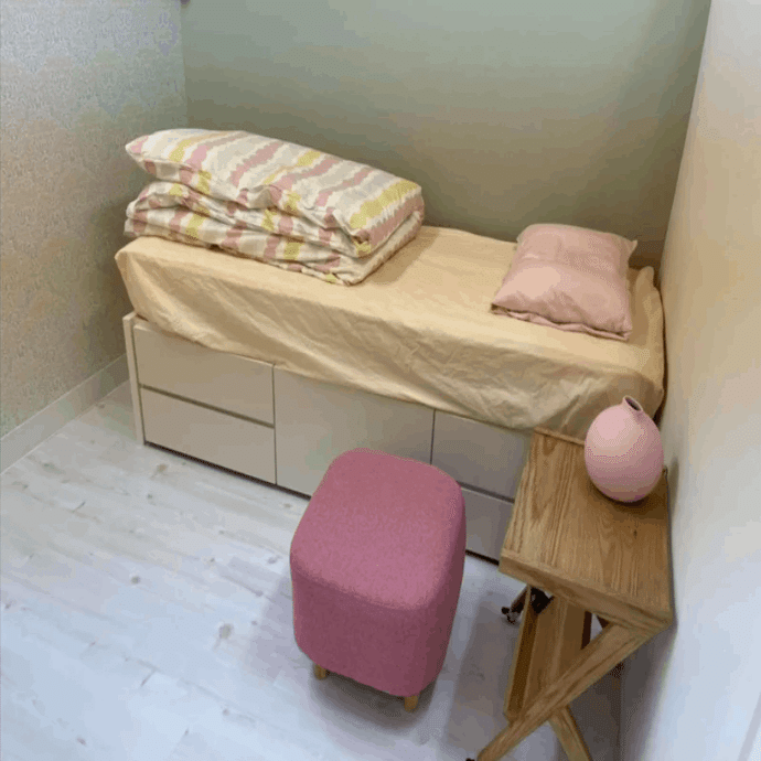 ひ「それに対して事務所はテナント内なので雨の日も関係ない。バスを運んで来なくてもいいし、テントを設営する手間もない。電気も水道も使えるだろうし、広さもバスカフェより広いはずだ。そしてこんな”立派な宿泊ベッド”まである」