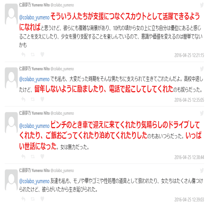 な「えっでも共産党と強いつながりがあるColabo代表仁藤夢乃さんはホストは素晴らしい人達で、助けられた、ホストのおかげで生き延びることができるって考えの人ですよ?」