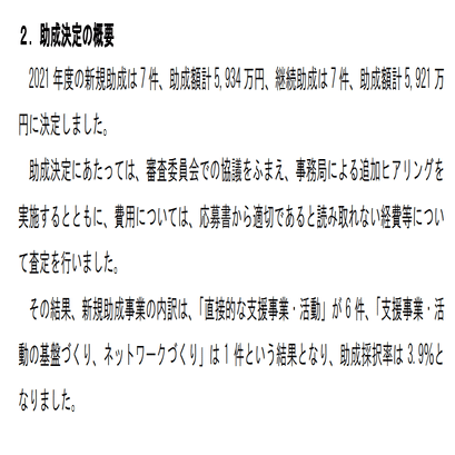 ひ「これが僕らが見ていた2021年度の助成継続決定事業。これ何件ある?」