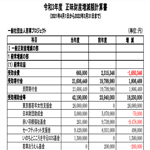 ひ「え~。じゃあまずはアカい羽根募金から。前回のアカい羽根募金の動画で、Colaboに約3000万円、ぱっぷすに約3300万円、BONDプロジェクトに1422万円、若草プロジェクトに1000万円流れてるって言ったよね」