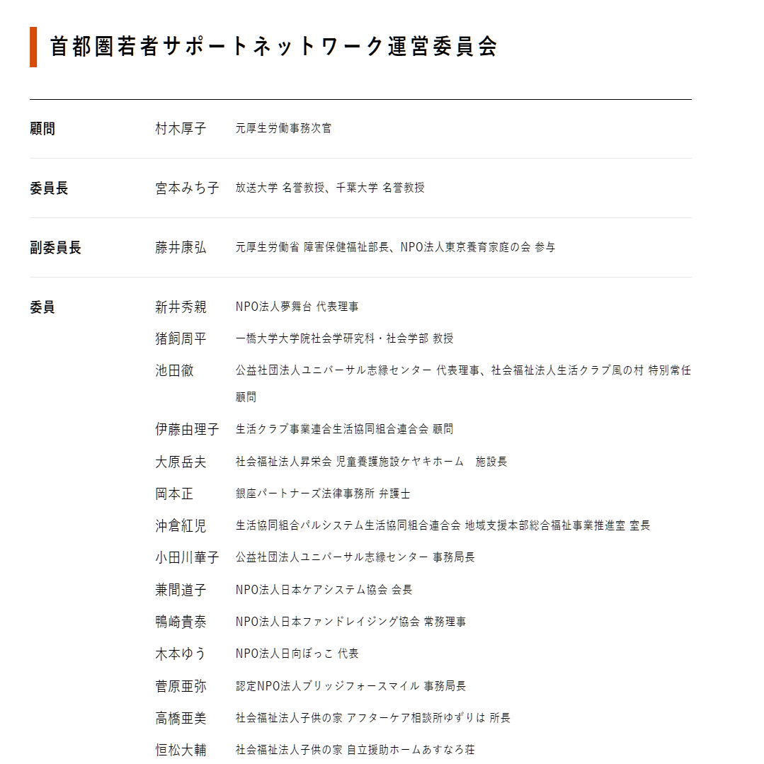 ひ「じゃ前回から続いてみていこうね。一旦気になった若者おうえん基金、首都圏若者サポートネットワーク運営委員会をみていこうか」