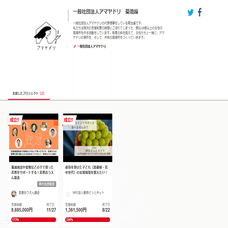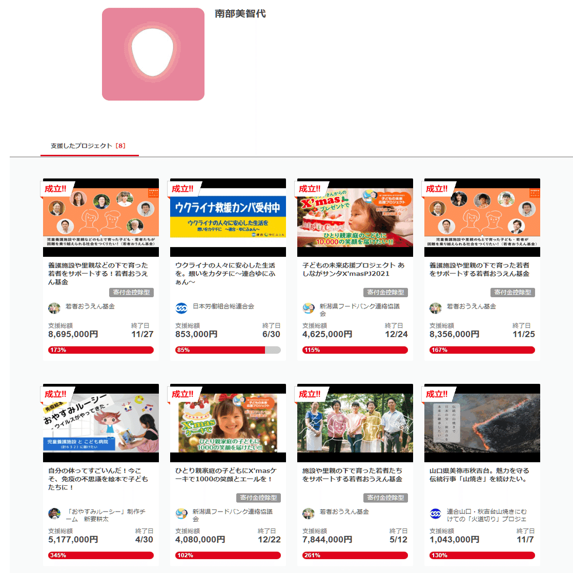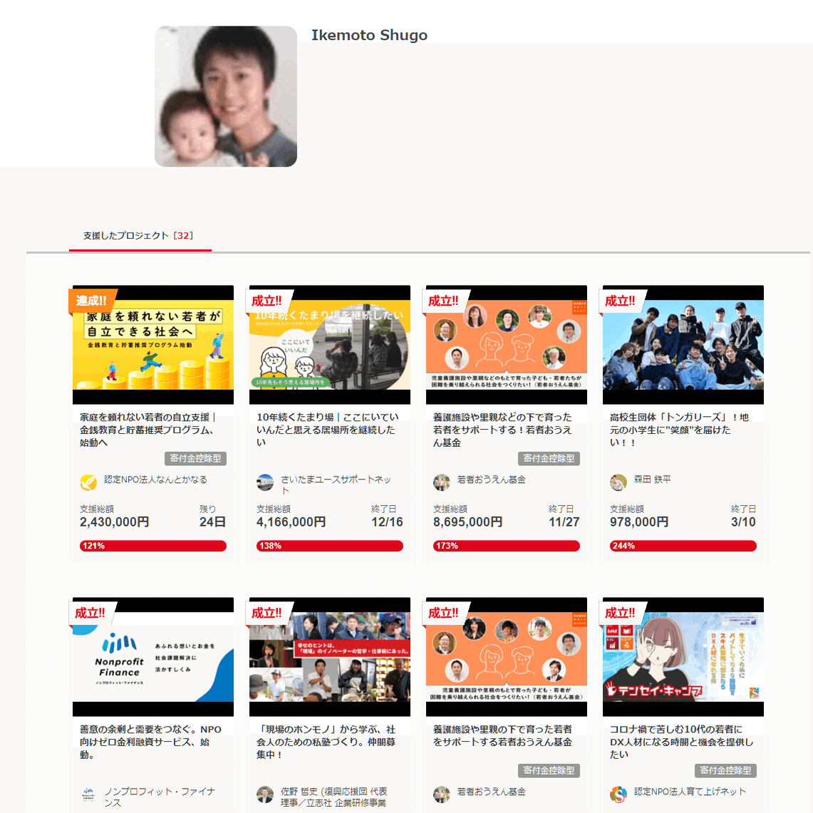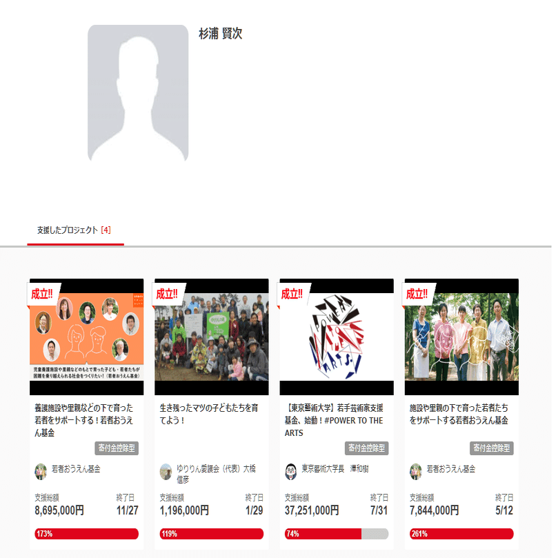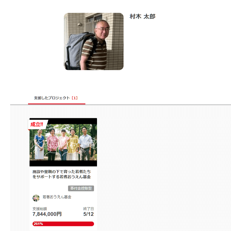 ひ「この人も、若者おうえん基金の助成金支援先でガッツリ寄付してるね」
