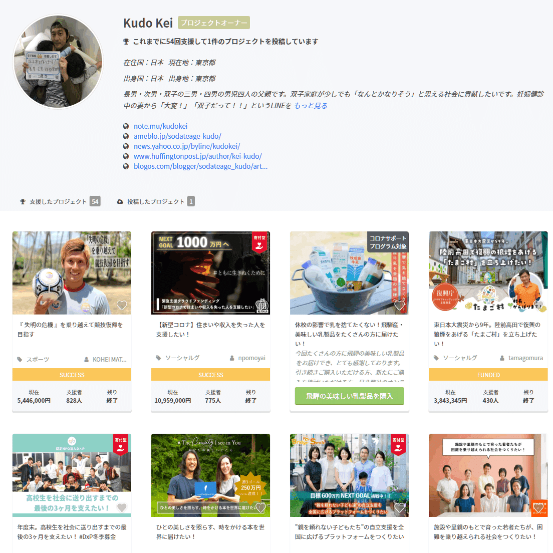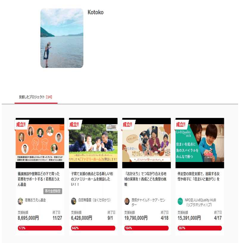 ひ「自分のところの最新プロジェクトにだけ募金してるね。ウケる」