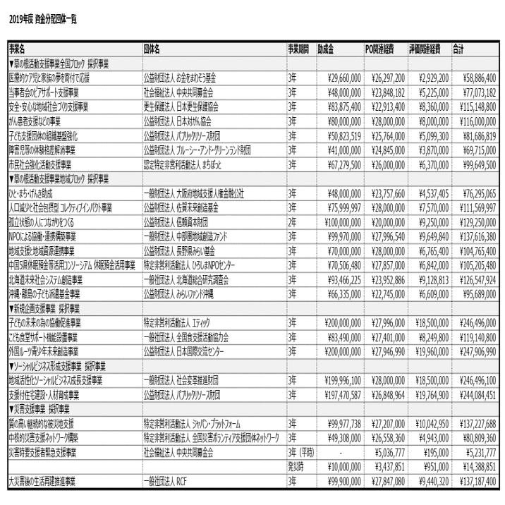 ひ「お金をばらまくためにプログラム・オフィサーって人が伴走型で提供するために働くらしいんだけど、このよくわかんないプログラム・オフィサーに対して1つの助成先につき2000万ちょっとずつかかってるんだよね。お金をまわそう基金も助成金2900万円にプログラムオフィサーまわりの経費が2900万で総額5800万だよ。こういう話する?」