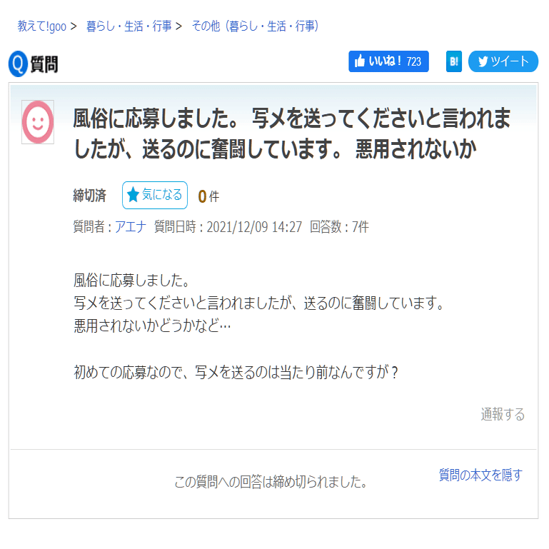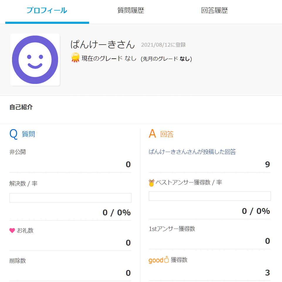 ひ「まず教えてGooは2021年8月にアカウントを作成し、いつものテンプレコピペを送りつけることを9回やったら飽きた模様」