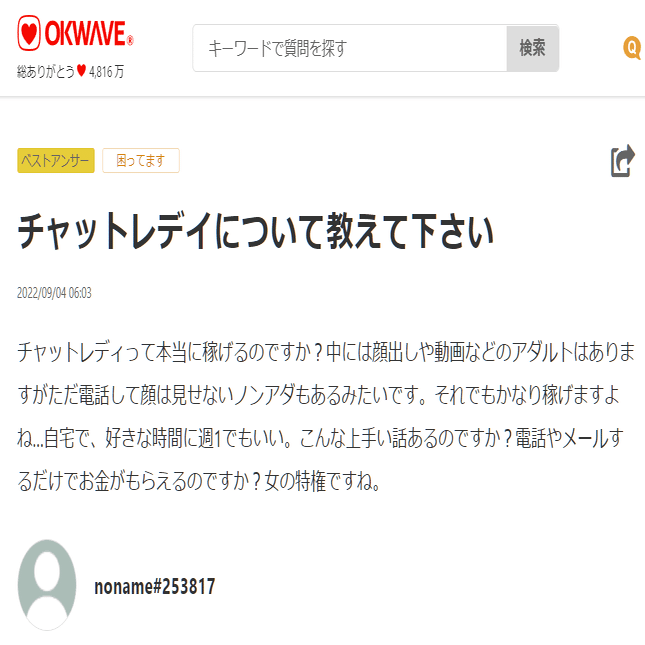 な「えーと、質問日が10月23日、回答が10月26日。3日間でテレフォンレディからチャットレディに転職したんですかね?」