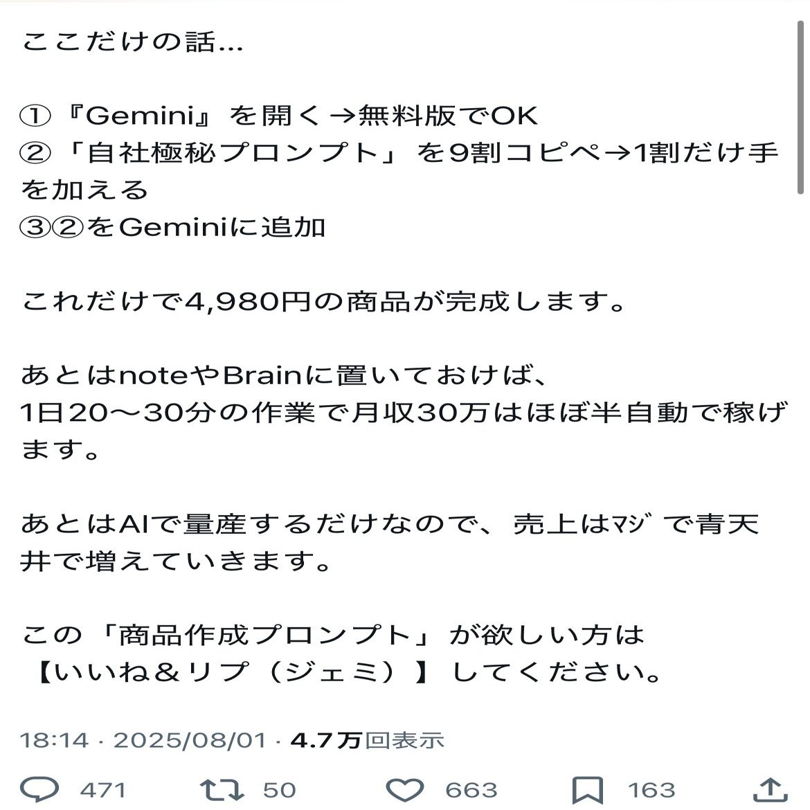 ・一時的なAI副業だったり
