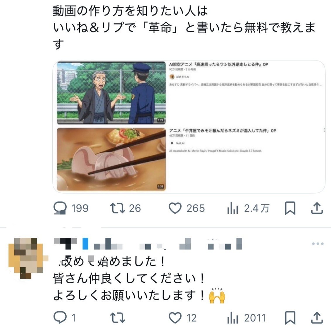 ②それを自分で投稿する。