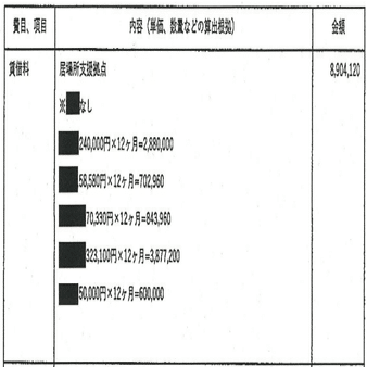 令和3年の戸建て施設が24万円だったこと、この費用の一番上に戸建てがあること、賃借料の一番上が24万円であること。以上から、賃借料とこの施設の順番は同一と考えるのが自然だ。そうするとこうなる