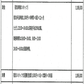 ひ「宿直スタッフ費用、9時間×8回×12ヶ月で1300円の12ヶ月で118万ください。そのスタッフの交通費として、1回1500円×2箇所×365回で110万ください。そう書いてあるね」