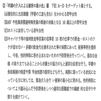 な「前年同様に、既に性風俗関連特殊営業に従事・街頭で数年間性を売る若年女性をターゲットにする」