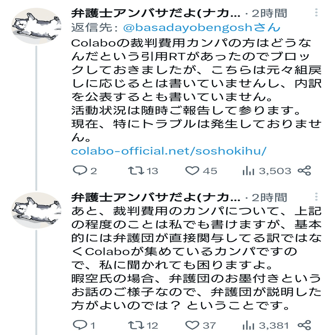 な「凍結した弁護士によれば、組戻しに応じないし、内訳の公表にも応じないらしいですよ」
