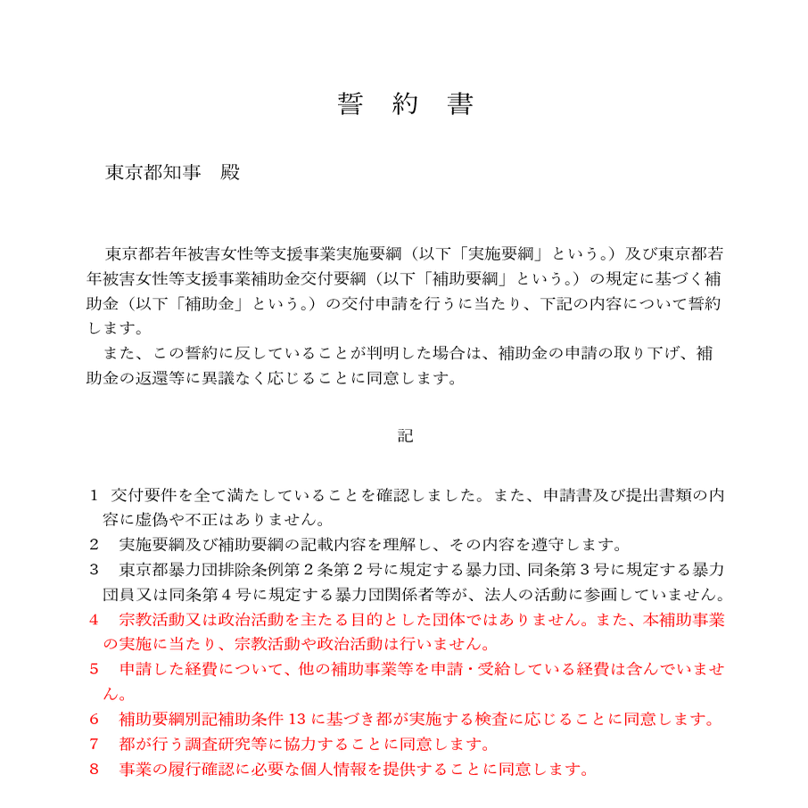 4 宗教活動又は政治活動を主たる目的とした団体ではありません。また、本補助事業の実施に当たり、宗教活動や政治活動は行いません。