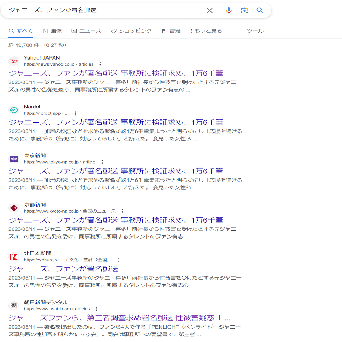 ひ「この二人がPENLIGHTの運営者で「高田アスミ(仮名)」と「古澤マコト(仮名)」。自称10年以上前からのジャニーズファンで、今になってカウアンさんの告発を見て急遽ジャニーズ事務所の性加害の検証と謝罪が必要と思い、PENLIGHTを設立したらしい。その会見には東京新聞望月衣塑子を筆頭に大勢の記者が集まり、まるでリーガルハラスメント提訴記者会見だったよね」
