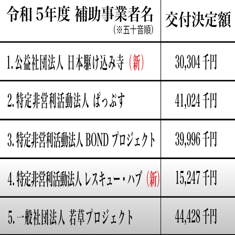 な「WBPの3団体は継続して受託し、新団体が2団体、合計5団体が受託しました。あれあれ?共産党と強いつながりがあるColabo代表仁藤夢乃さんは「この若年被害女性等支援事業は個人情報を東京都に出さないといけないからこんなのじゃ女の子は来ない」とか喚いてませんでしたっけ?」