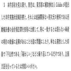以上!原告の「不正指摘」は「ぼんやりと疑問がある、不自然だと言っている」だけだと思うのでもっとちゃんと不正を立証しないと、Colaboは立証責任を負いません!ぷりぷり!だってさ」