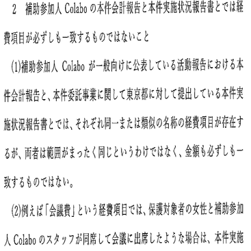 被告補助参加人(Colabo)が、原告が訴状段階で指摘をした費目を中心に、支出の内容について主張立証をする