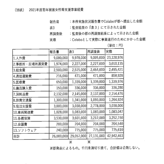 実際(Colabo主張) 4294万2463円←NEW!!!!!!!!(今回初登場)