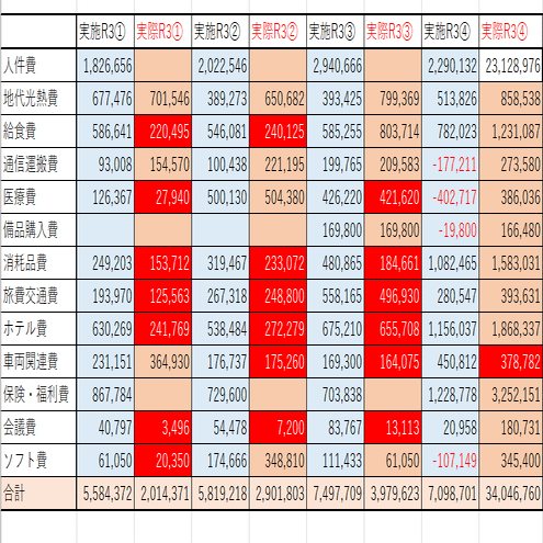 ひ「例えば、ホテル費用は令和3年6月30日に提出したことになっているこの実施状況報告書(令和3年度4-6月