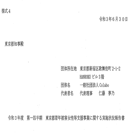 な「それがどうかしたんですか?Colaboは「中長期保護は若年被害女性等支援事業にはカウントしておらず別の自主事業である」って主張してるからこれ自主事業で無関係のはずですよ?都庁の報告書にもR3年度通して中長期保護女子は0人です。つまり、中長期保護女性達のこの合宿はColaboの自主事業だと断定できます・・・はっまさか!?」