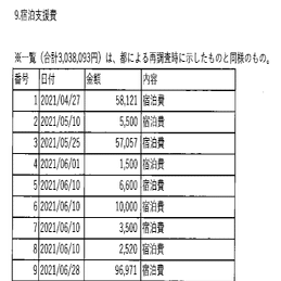 な「??????????????????令和3年の6月30日に4-6月で63万円、ホテル宿泊費を使ったって都庁に報告してて、令和5年になって新しく出てきた「実際の費用表」を見ると、4-6月に24万円しか使ってなかったってことですよね?」