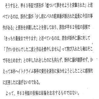 ひ「あとは争点を整理した原告第7準備書面が出て、こっちの書面に反論する第8準備書面が出てきた。法律論のところは解釈を伏せるのでスルーするとして、これはふれなければならない」