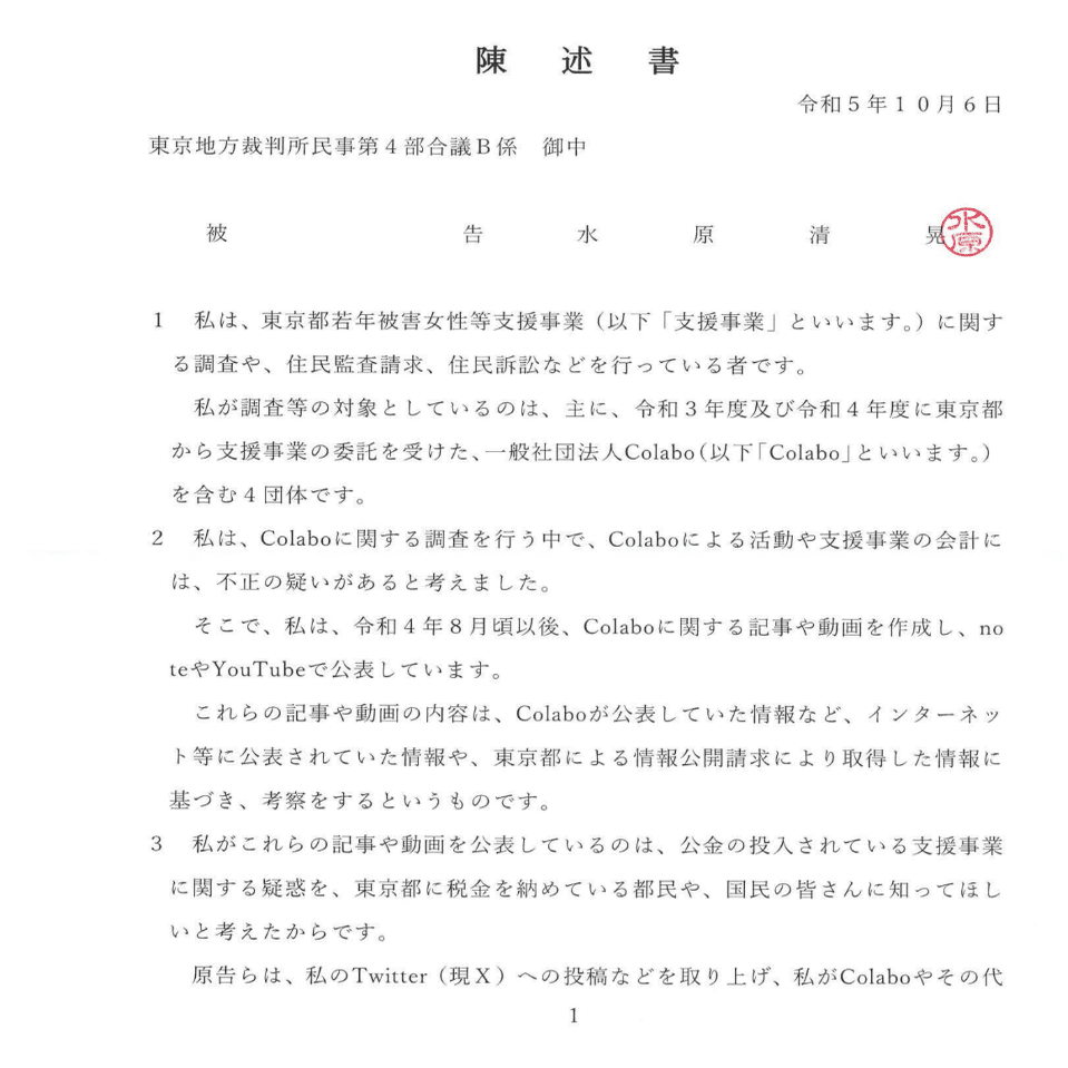 ひ「さて、いわゆるタコ部屋訴訟、原告Colabo側からは準備書面6,7,8,9が出て、僕側は5,6を出したよ」