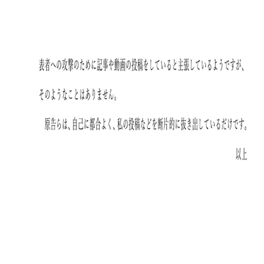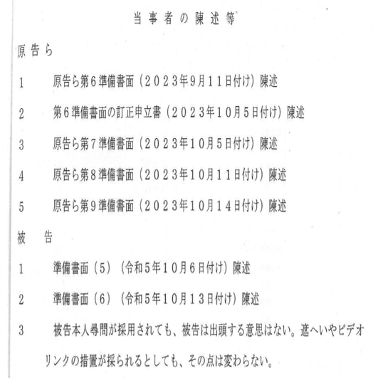 ひ「余談として、原告は本人尋問を強く求めてきましたが、はっきりと本人尋問には出席しないことを表明しました。裁判期日調書(裁判所の記録)にもこのようにはっきり残っています」