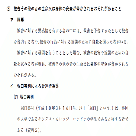 ひ「あとね、本人尋問は要らないよねって堀口英利などの危険が危ないってことを説明する、画面ナイフ事件とかを羅列した意見書を出したよ」