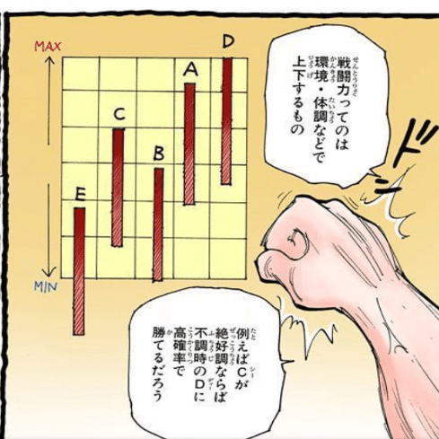 なお、基準はビスケグラフに準拠し、「Tierランクが違うと、絶不調のときに相手が絶好調でも負けない」つまり、Tier1がDだとすると、ABCはTier1に入るが、EはTier2になる。あとは強い順。