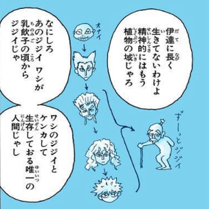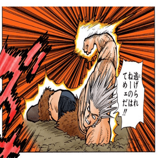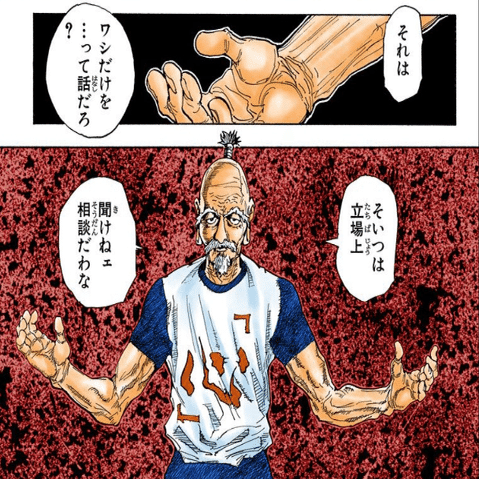 だが絵からも見て取れるように、ネテロは「ヨボヨボに衰えている」のである。ネテロは「衰えた体」でもできる戦い方として百式観音という「自分では直接殴らない、具現化した観音が不可避高速パンチ」を編み出した老兵である。
