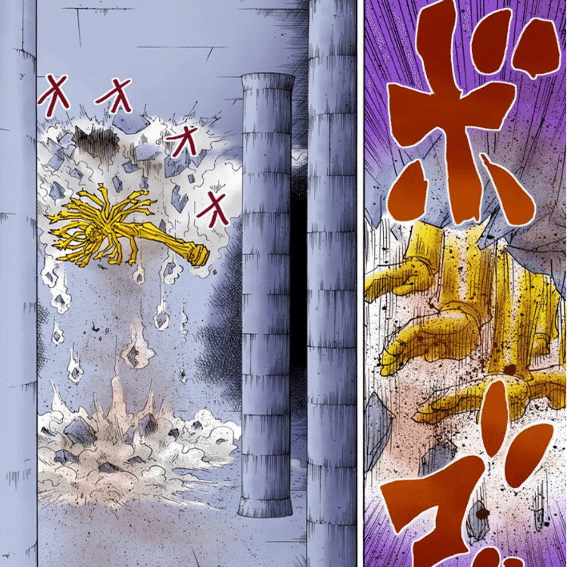 変な姿勢の万全じゃない状態で打ったビッグバンインパクトと、九十九の掌で威力を比べると、地面のえぐれ方は同じくらいに見えるが、「観音のでかい掌で突いて地面をえぐる」と「ウボォーの拳で寝転がった状態から蛭を殴ったら衝撃で地面にクレーターが出来る」だと、直接人体に叩き込んだ場合はビッグバンインパクトのほうが威力が高いことは容易に推測できる。きちんとした姿勢で打ったビッグバンインパクトは更に強力だろう。やはり百式観音は、急ごしらえの零を入れても「強化系を極めたネテロ」の技としては威力が全然足らない。