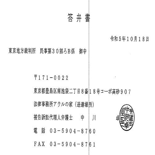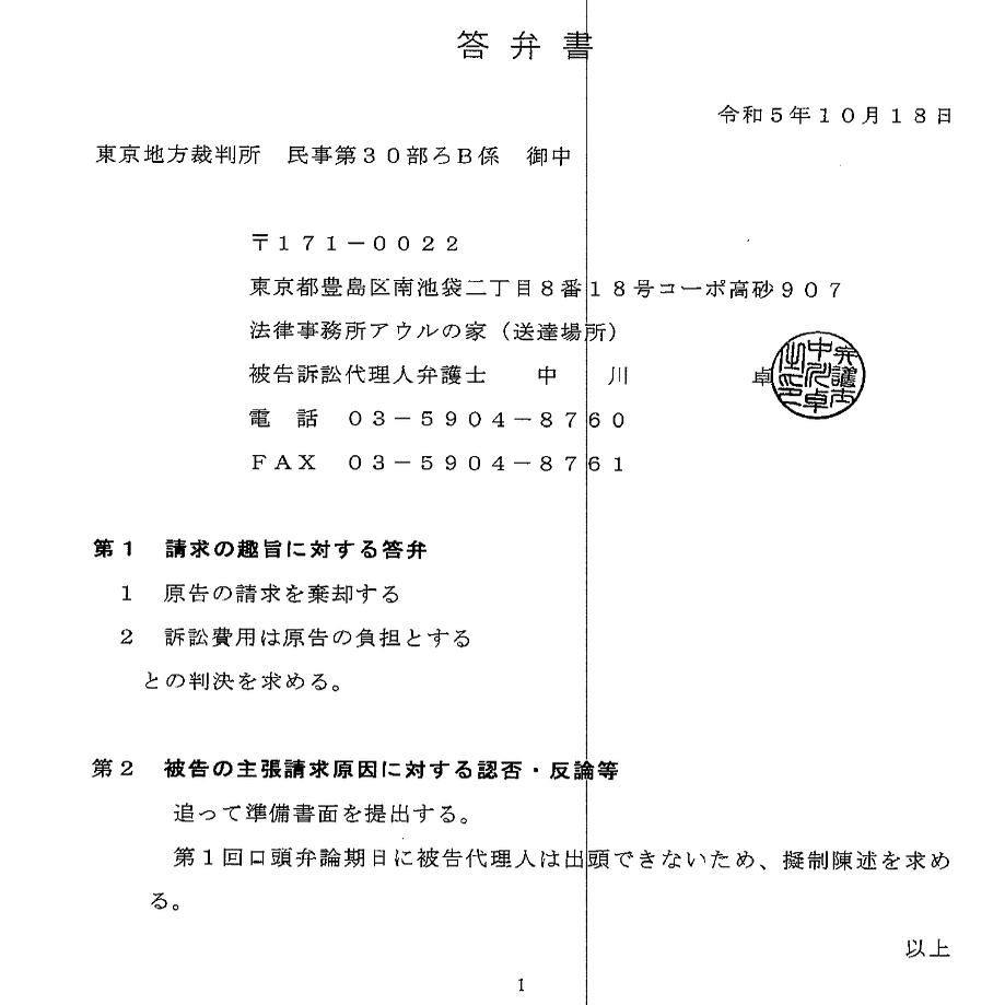 というわけでその後提出された第一準備書面をみていこうか。まずこちら