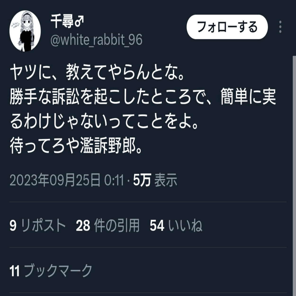 ひ「私も遠慮しておきます。じゃ中身を見る前に訴状をふりかえってみようか。訴えたのはこのツイート1つ”でした”」