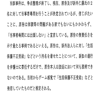 ひ「今回の書面は中川卓弁護士が自由闊達に書いたとしか思えない書面で、裁判書面を読み込める人、たとえば法クラの人にはとてもおすすめです」