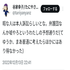な「大変ですよ!谷家幸子さんから、暇空は訴えるといって訴えない!!債務不存在確認訴訟を起こす!!とかいってカンパを集めています!!どうして・・・どうして訴えないんですか!!!」