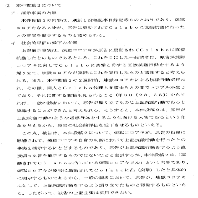 ひ「今回の件でいうと、「カンパ7000万は統一教会」「コロアキを扇動した」といった内容のツイートが名誉毀損かどうか?が争点だからね」