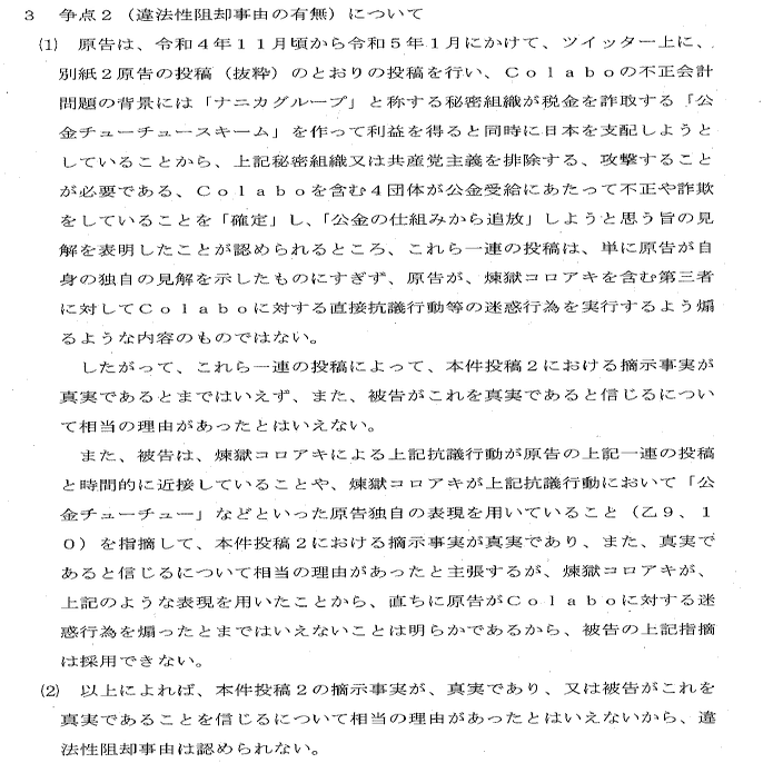 な「ナニカグループについての神原弁護士が出した反論は、「原告が独自の見解を述べたにすぎない」ってなってるね。ナニカグループのことを秘密組織といってて解像度低いなって思いますけど」