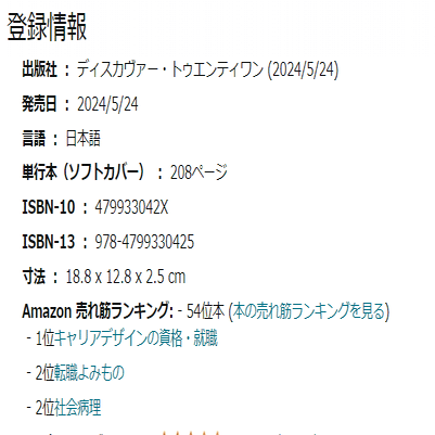 ひ「本で54位なのに、ベストセラー1位ってタグがついてるのは、マニアックでライバルの少ない転職よみものってジャンルを設定したからだね。こういう小狡い感じが嫌い」