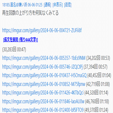 ひ「物量で押せばごまかせるから。調べた人によれば、石丸動画は夜中に再生数がブーストされてるらしい。業者だね」