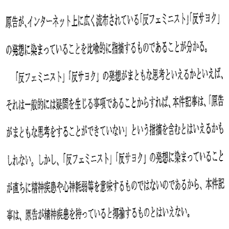 ひ「脳が壊れちゃってるは、「反フェミニスト」「反サヨク」の発想に染まっていてまともな思考ができないという意味だから、精神疾患ではない!だそうだ」