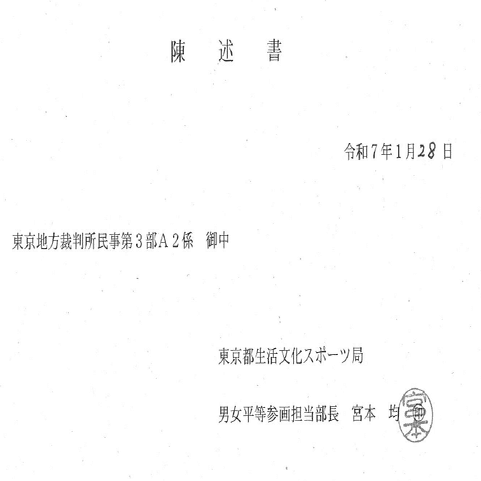 東京都スポーツ局の部長が陳述書だしてきて