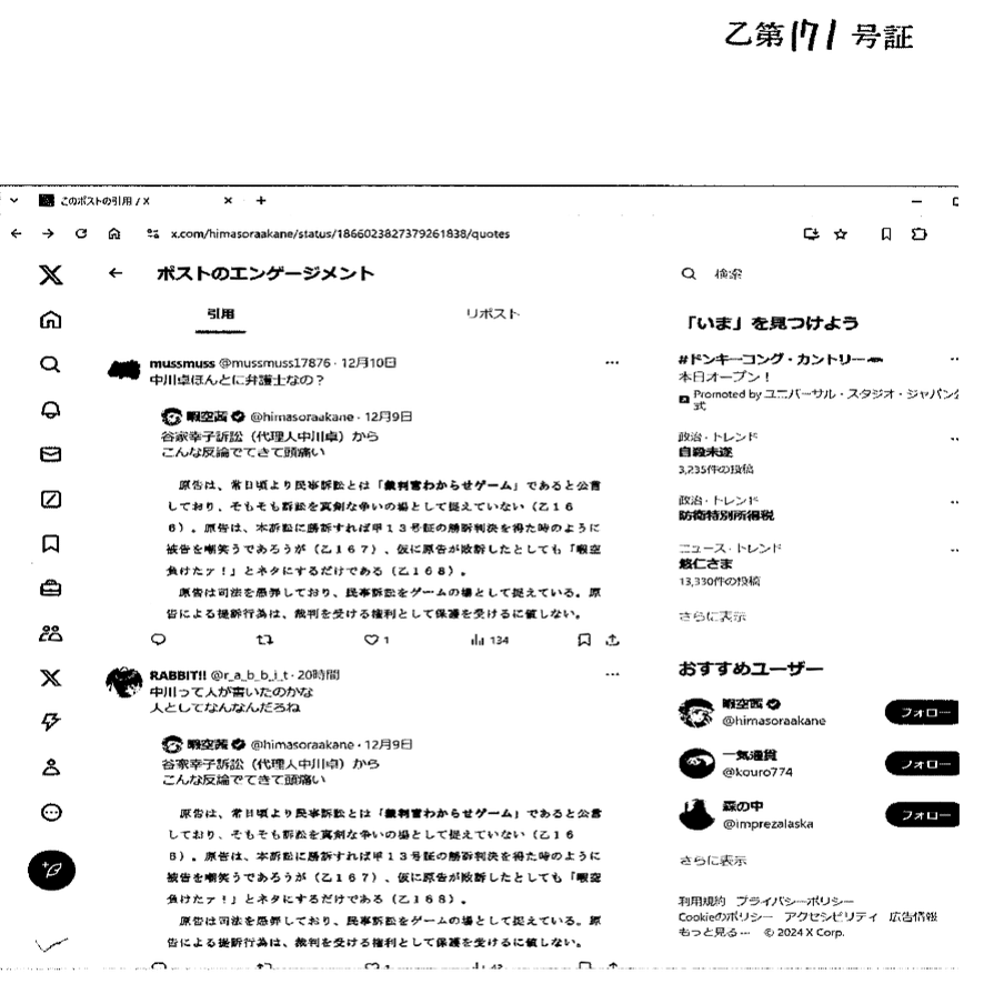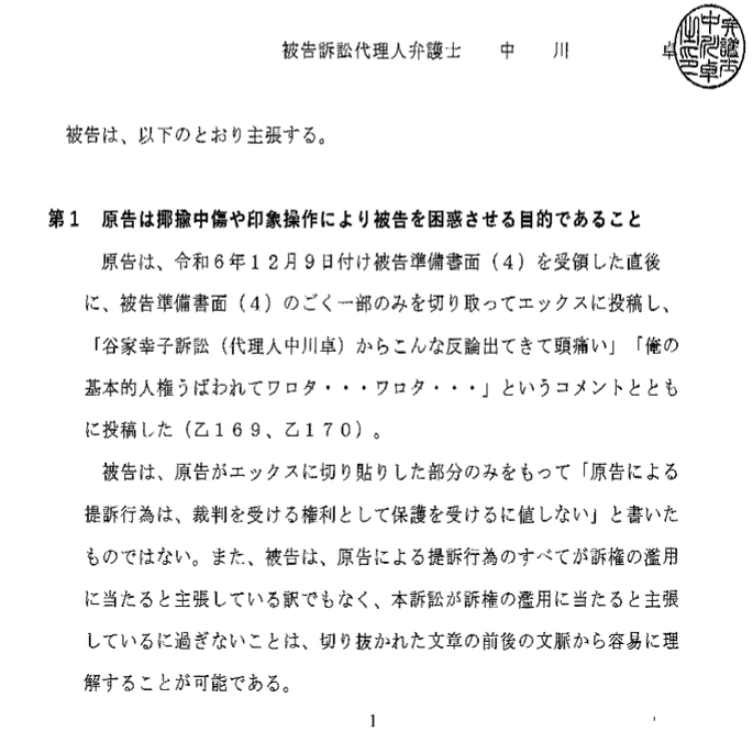 な「これ被告じゃなくて被告弁護士の中川卓さんにむけてのツイートじゃないですか?」