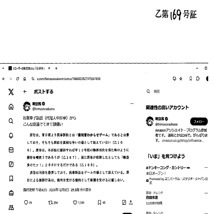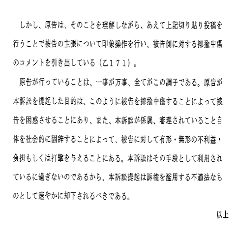 な「これで誹謗中傷?被告の?書面への意見では?」