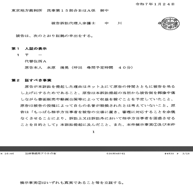 ひ「あと中川卓弁護士から僕の本人尋問申請が出たね」