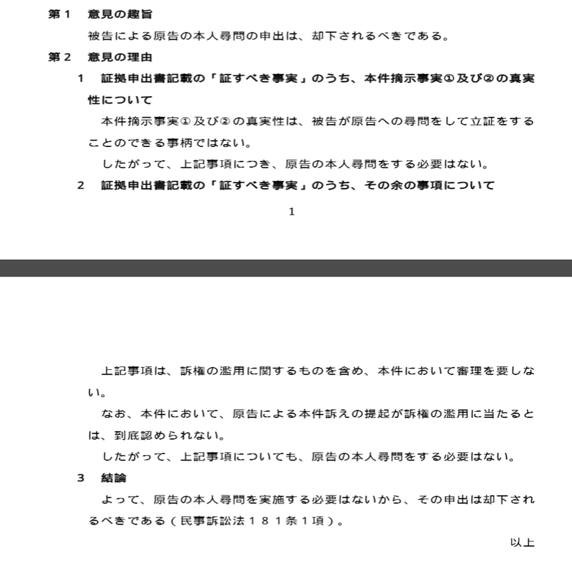 ひ「こちらはこの意見書を出しておいたら、尋問の必要性がないということで裁判所に却下されました」