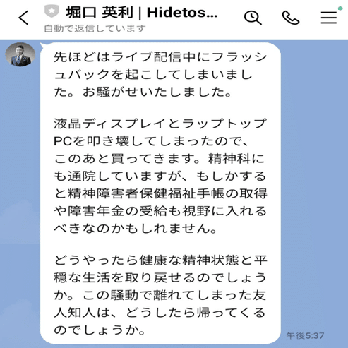 8/16 堀口のInstagramも別人に乗っ取られる(端末機種や画面設定、口調やクセが変わっていた)