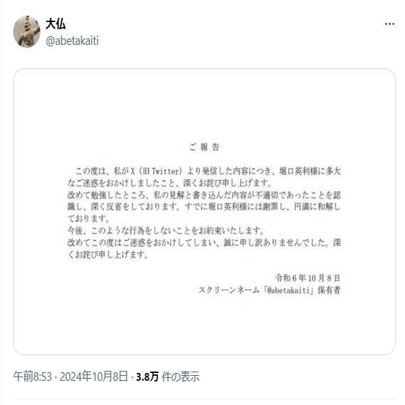 10/8 大仏が謝罪