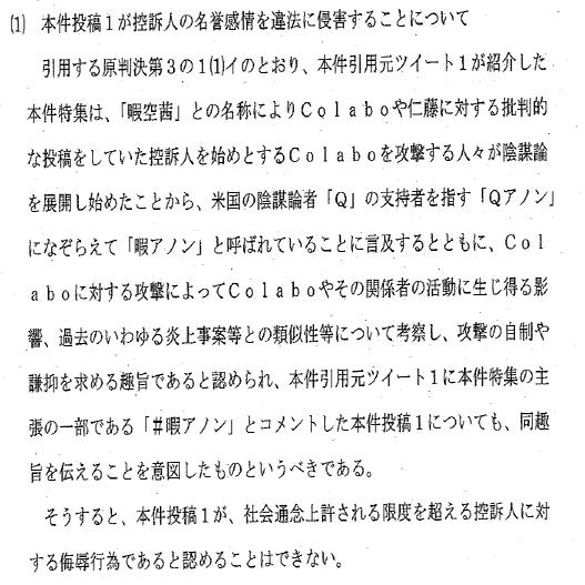 ひ「で、このColaboを支える会というアカウントは、僕の支持者を暇アノンと呼んだり、暇空はぶっ◯したほうが早いというポストをリポストしたりと、無茶苦茶な団体だったので、代表の北原みのりさんを提訴しました」