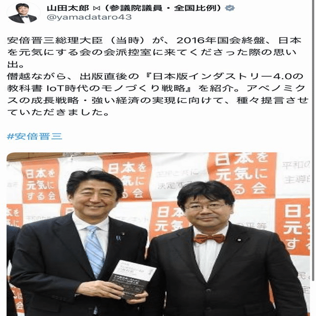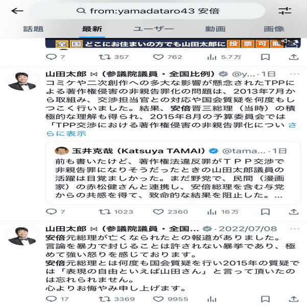 こちらが山田太郎が2025年7月8日、3年目の命日にしたツイートです。